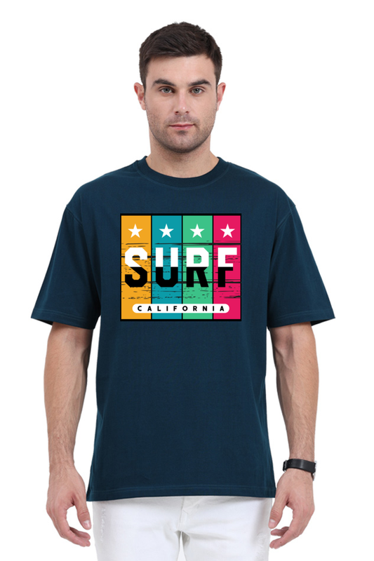 Surf California Men’s Oversized Cotton T-Shirt with Rainbow Print