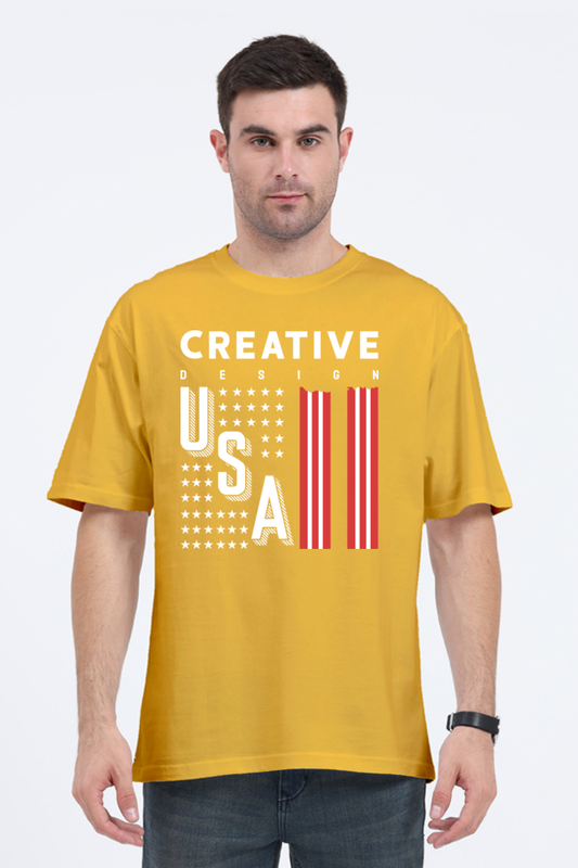 Creative Design Men’s Oversized Cotton T-Shirt with USA Print