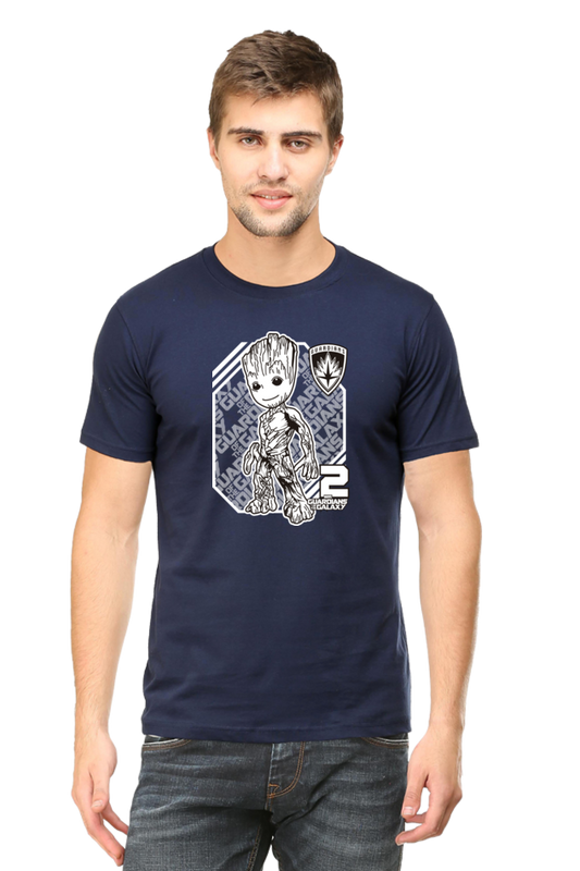 Groot Print and Guardians of the Galaxy Text Cotton T-Shirt for Men